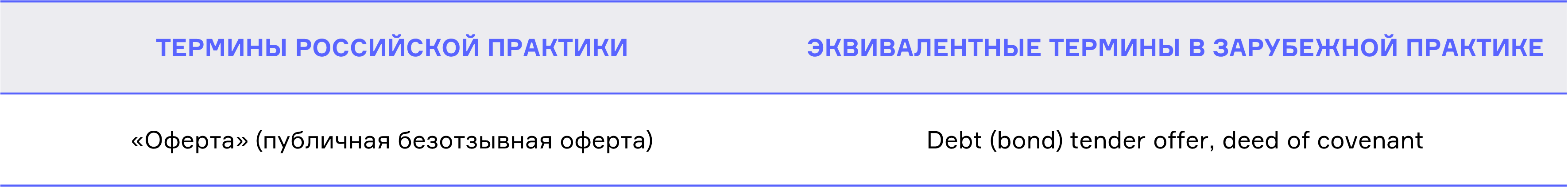 Оферты, которые объявляются до начала продажи облигаций инвесторам, имеют отдельные сходства с конструкцией deed of covenants из английского права – письменным односторонним обязательством по установленной форме. Однако если deed – это все же обязательство, которое возникает сразу при оформлении документа, то оферта при ее «выставлении», согласно российскому законодательству, создает лишь право акцепта, но не обязательство.